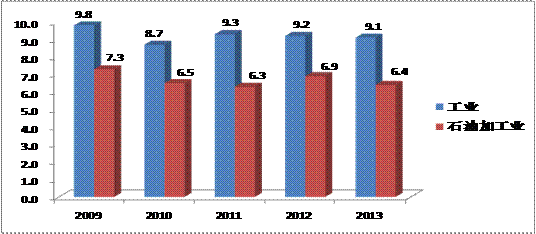 重點企業(yè)物流統計調查數據顯示,2013年石油加工行業(yè)物流成本費用率為6.4%,較2012年下降0.5個百分點,且低于全部調查工業(yè)企業(yè)2.7個百分點,顯示出行業(yè)的物流成本水平有所下降。