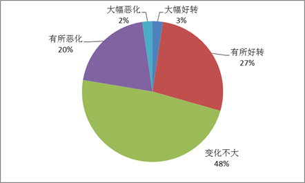 調(diào)查顯示,樣本企業(yè)中,48.2%的企業(yè)認(rèn)為通行環(huán)境變化不大,27.1%的認(rèn)為有所好轉(zhuǎn),20%認(rèn)為有所惡化。