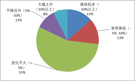調(diào)查顯示,樣本企業(yè)過路過橋費(fèi)平均占運(yùn)輸成本的14.9%。其中干線運(yùn)輸物流企業(yè)過路過橋費(fèi)占運(yùn)輸成本的22.7%。與往年相比,55%的企業(yè)認(rèn)為過路過橋費(fèi)變化不大,26%的企業(yè)認(rèn)為有所下降,19%的企業(yè)認(rèn)為有所上升。