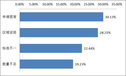 調(diào)查顯示,關(guān)于城市配送車輛通行證管理,30.1%的企業(yè)認(rèn)為申請困難,28.2%的企業(yè)認(rèn)為區(qū)域設(shè)限,22.4%的企業(yè)認(rèn)為標(biāo)準(zhǔn)不一,19.2%的企業(yè)認(rèn)為通行證數(shù)量不足。