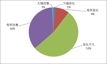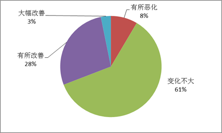 調(diào)查顯示,61%的企業(yè)認(rèn)為所在領(lǐng)域法律環(huán)境變化不大,28%的企業(yè)認(rèn)為較去年有改善。