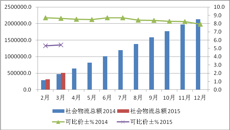 從后期走勢看,物流市場仍將保持平穩運行,有利因素增多。一是“一帶一路”等宏觀政策助推物流需求增長,中西部地區以及國際物流需求將成為新的增長動力;二是“互聯網+”加速發展為行業提供創新動力,通過落實“互聯網+”這一新興戰略,物流行業可以打破原有的封閉式、粗放式的發展格局,形成一種資源共享、優勢互補、互利共贏的市場機制,有利于社會化大生產與專業化流通的集約化經營優勢發揮出巨大的功效。三是物流先行指標回升, 3月份中國物流業景氣指數(LPI)為58%,比2月回升3.1個百分點,物流業新訂單指數回升4.5個百分點,回升至59.8%,顯示出,隨著生產建設季節的到來,供應鏈上采購、生產和銷售等經濟活動趨于活躍,物流運行逐步進入穩中趨升的區間。總的來看,預計上半年社會物流需求增速較一季度有所回升,全國社會物流總額可比增長6.0%左右。