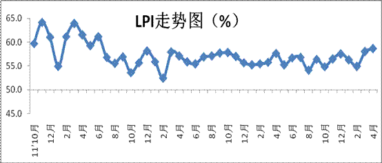 中國物流與采購聯(lián)合會發(fā)布的2015年4月份中國物流業(yè)景氣指數(shù)(LPI)為58.6%,比上月回升0.6個百分點。各分項指數(shù)均有不同程度的回升。