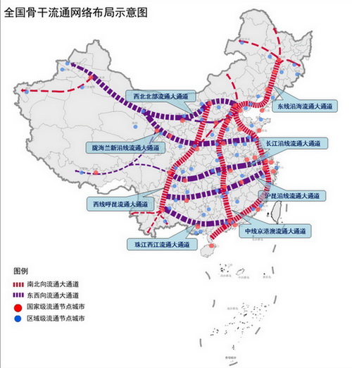 全國骨干流通網絡布局示意圖