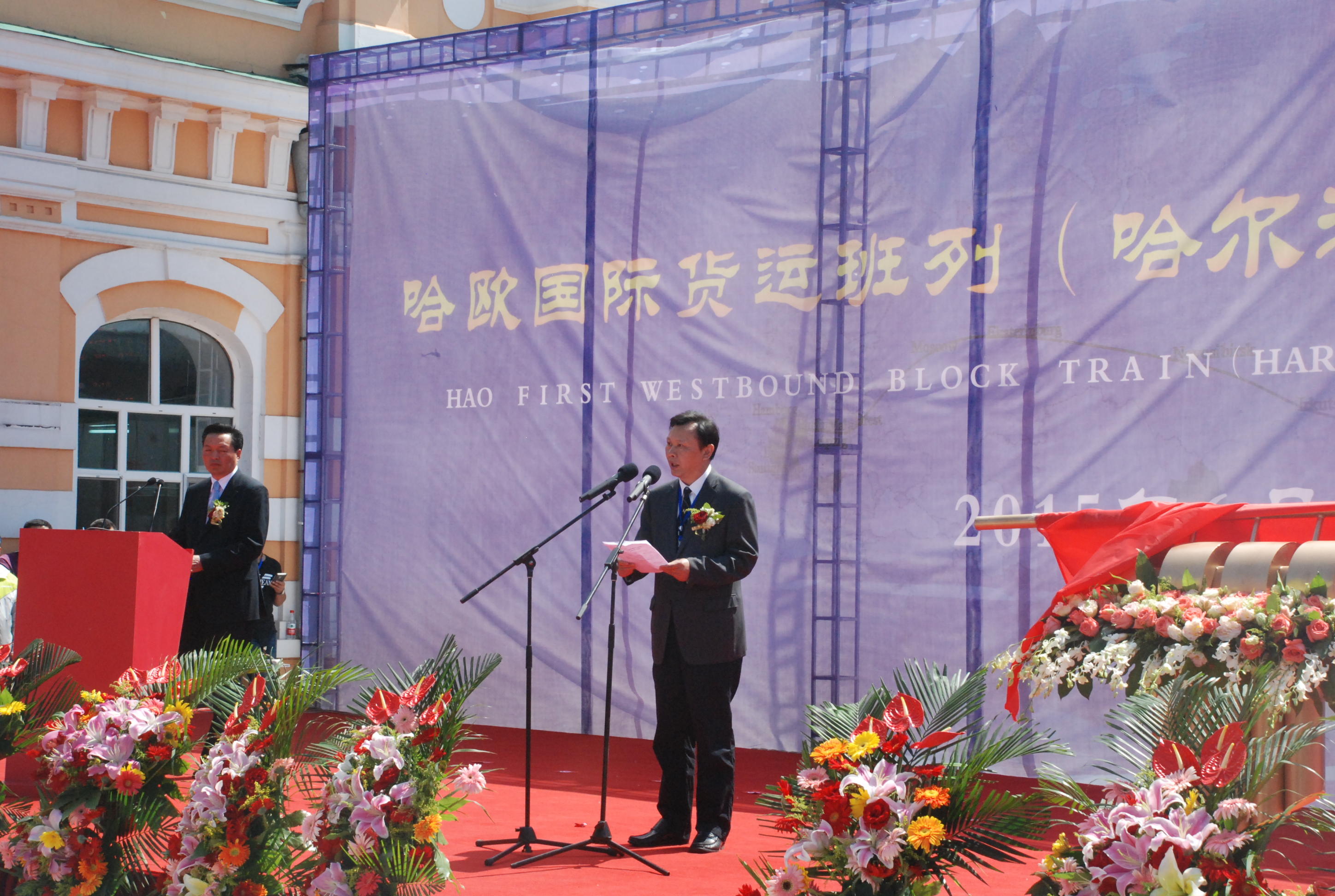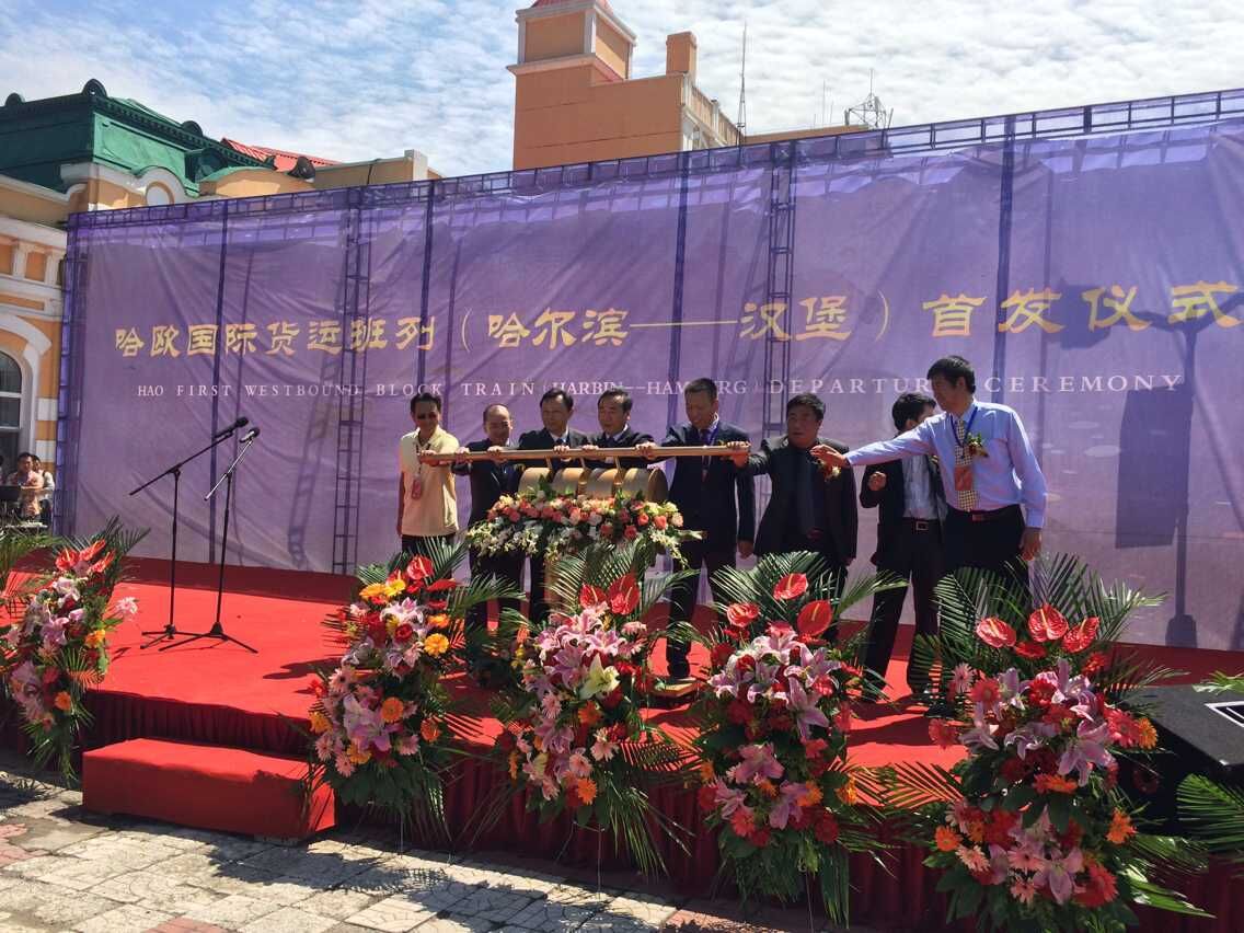 6月13日,中國物流與采購聯(lián)合會會長何黎明在哈爾濱香坊火車站出席了哈歐國際貨運班列開通儀式并發(fā)表熱情洋溢的致辭,同時與黑龍江省政府常務(wù)副省長郝會龍、黑龍江省委秘書長李海濤以及長久物流董事長薄世久等共同為首趟班列推動啟動桿。