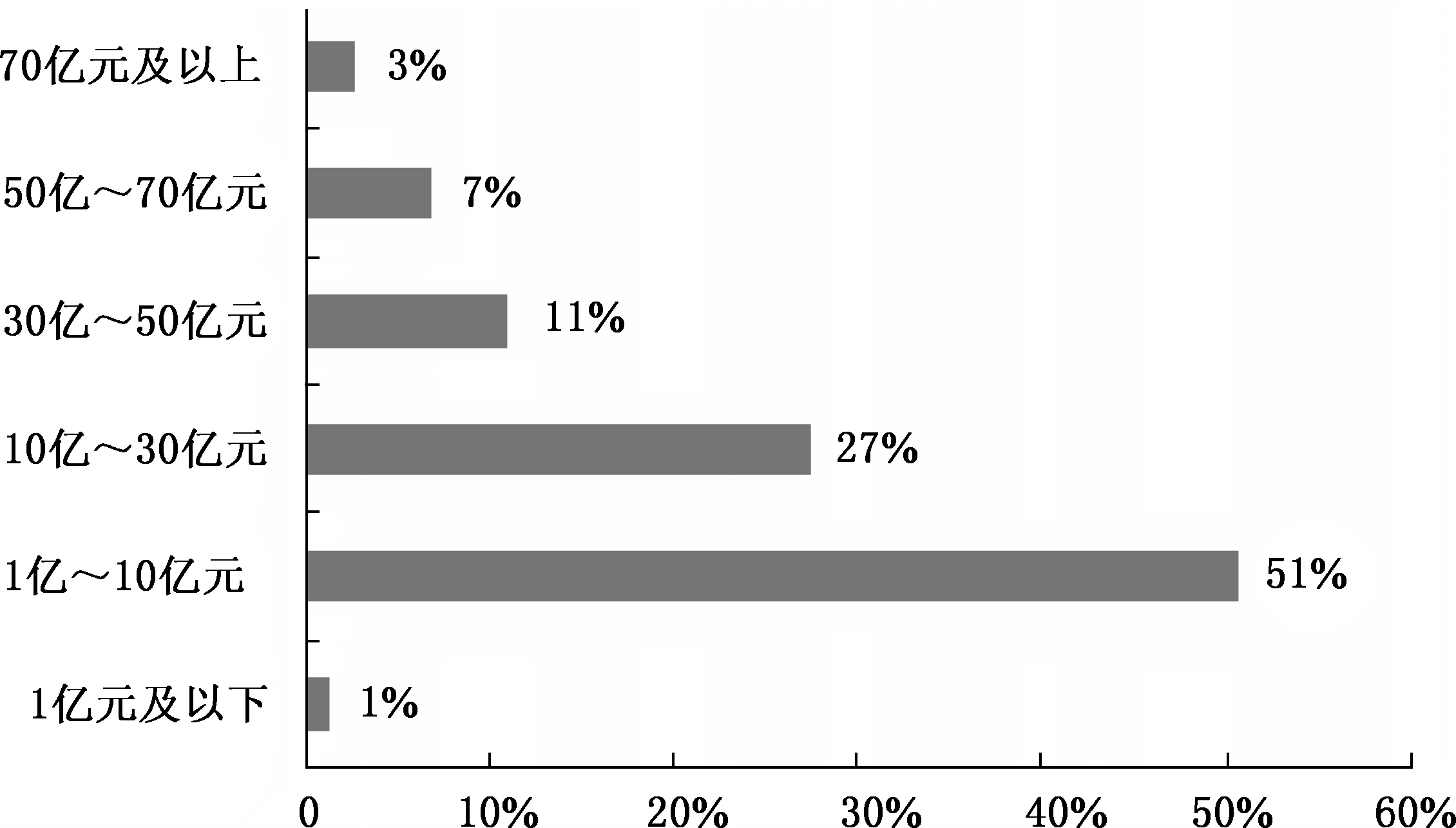 一一物流園區平均規劃投資額為20.1億元。其中,投資1億~10億元的物流園區占51%;10億~30億元的物流園區占27%。如圖1所示。