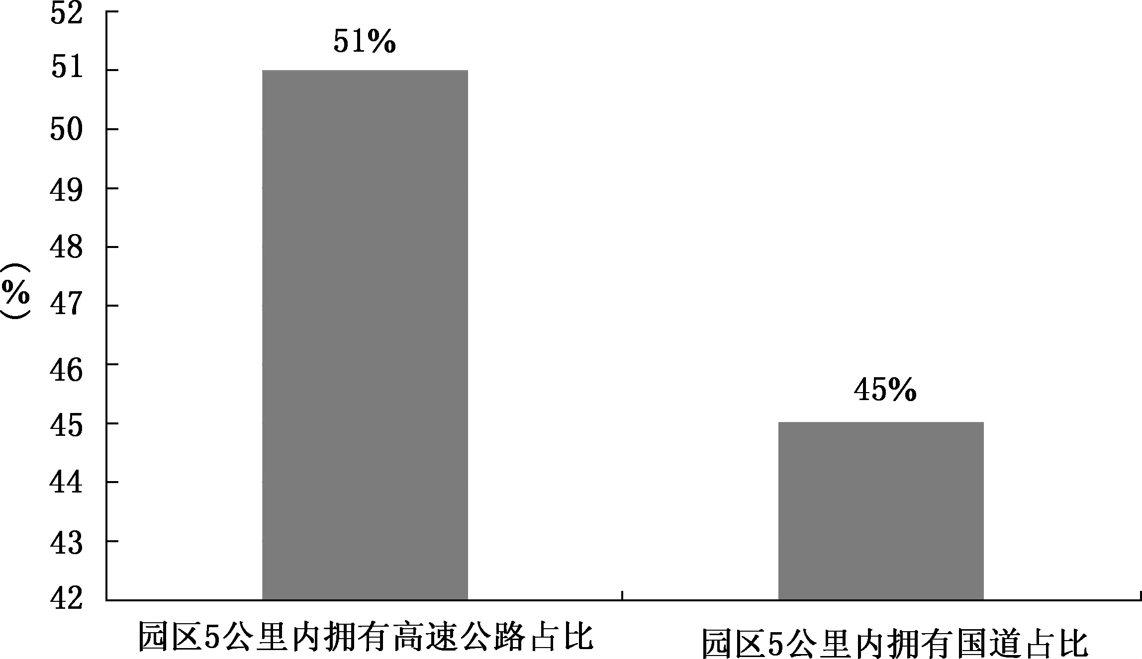 圖11 園區距高速公路出入口以及與國道距離分布情況