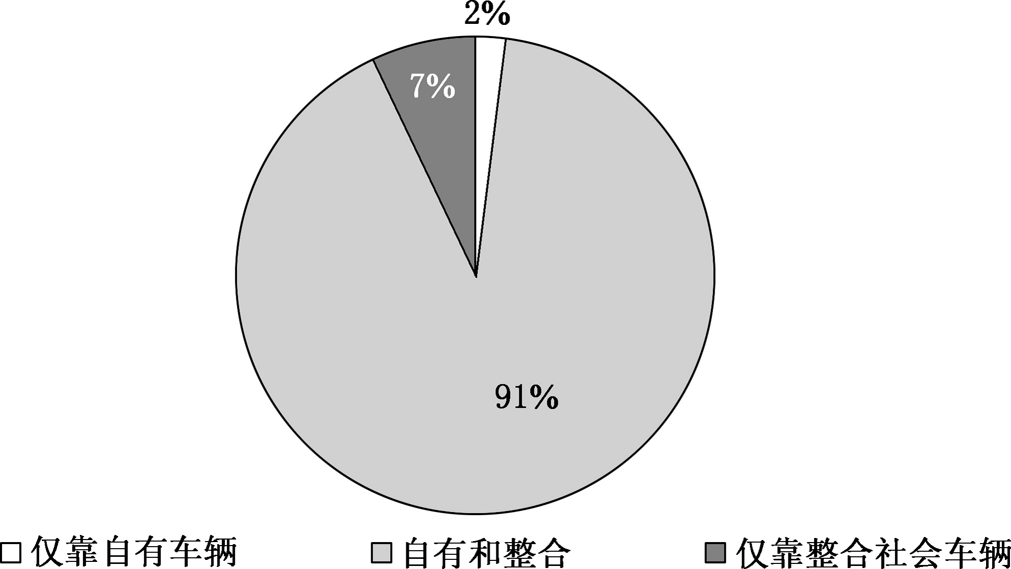 一一根據統計數據結果,依靠自有車輛運營的物流園區比例僅為2%,依靠整合社會貨運車輛的園區比例為7%。大部分物流園區采用自有貨運車輛和整合社會貨運車輛相結合的方式,如圖15所示。