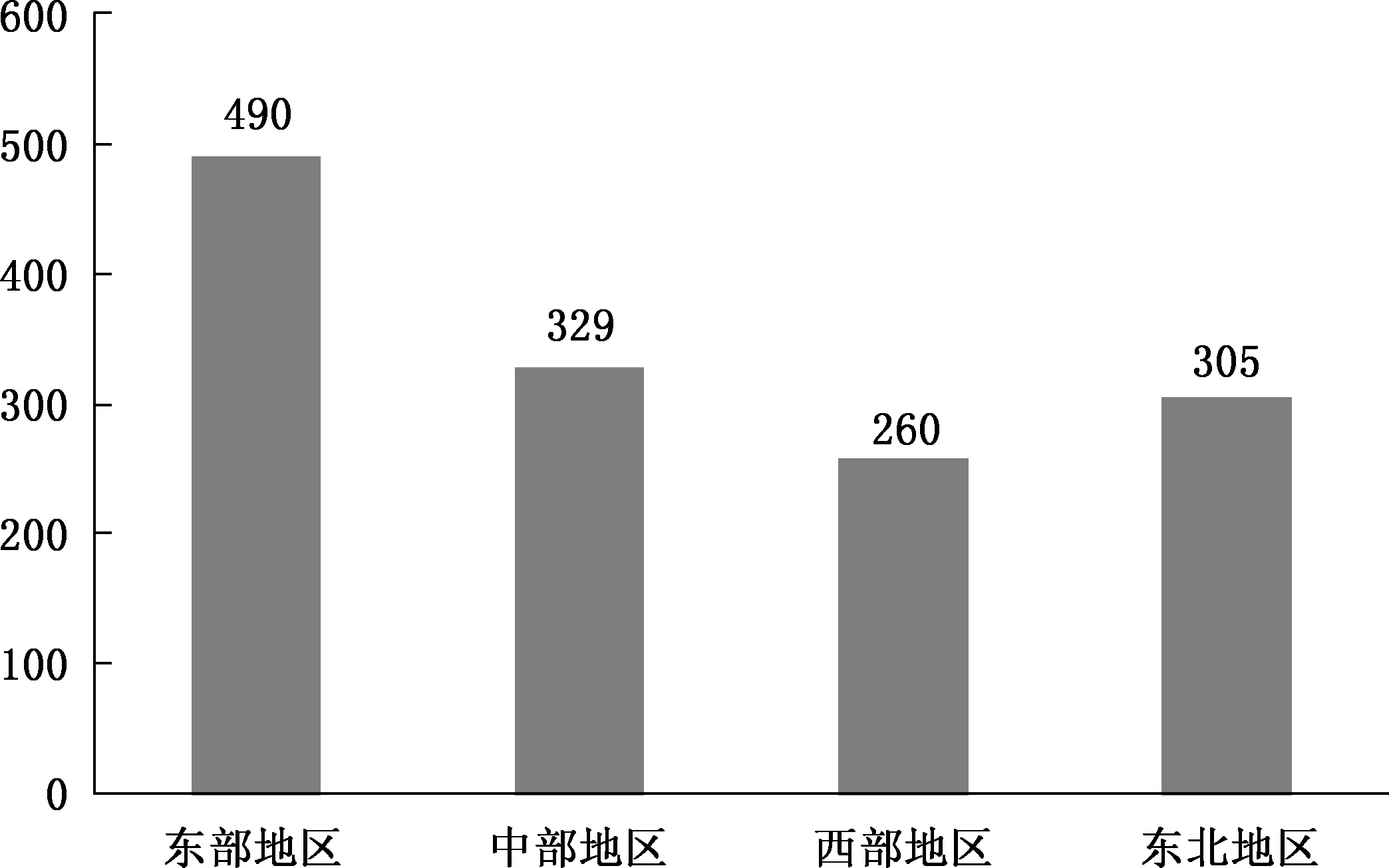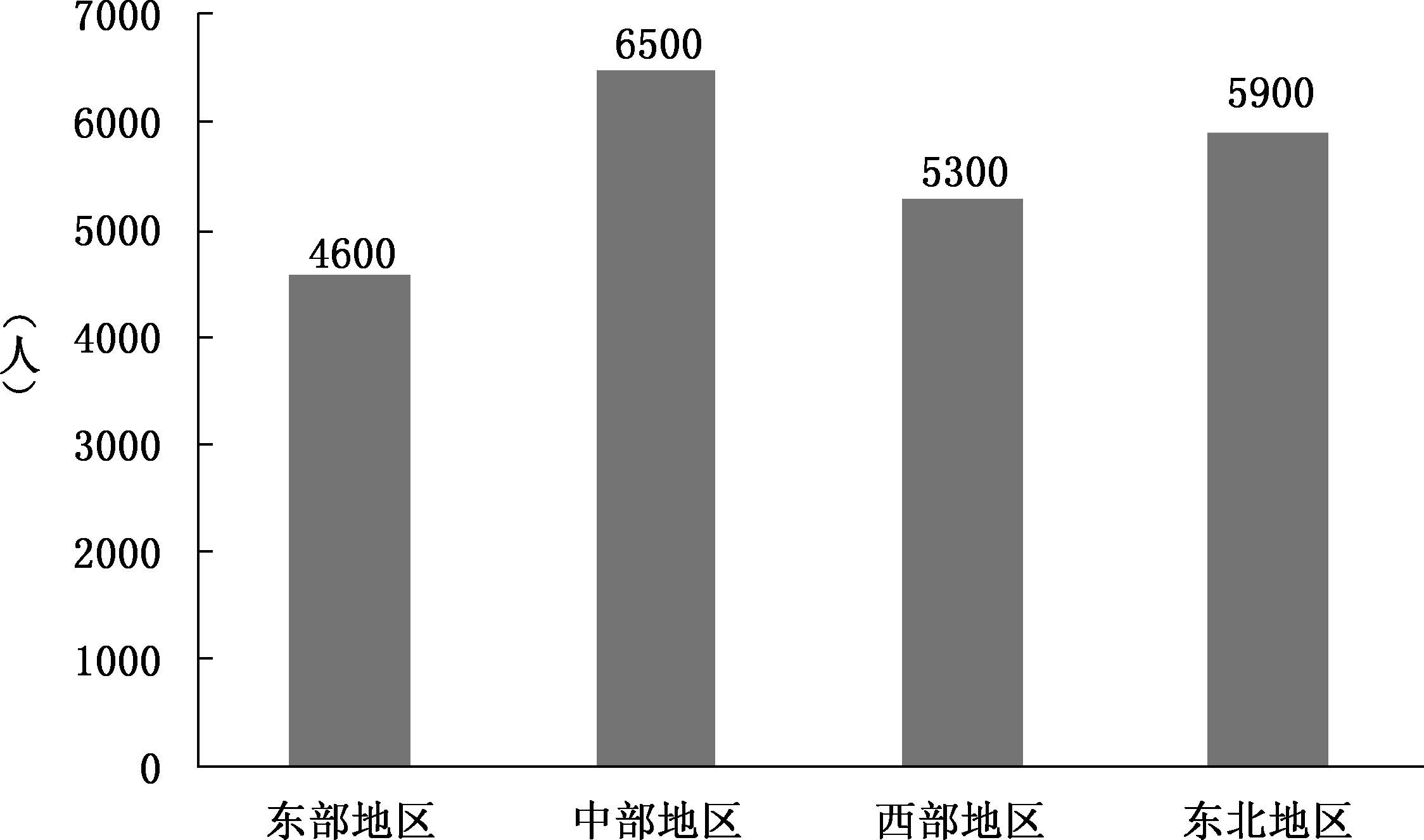 一一我國不同經濟區域的物流園區就業人數示意圖如圖23所示。從中可以看出,中部地區物流園區就業人數較多,東部地區的物流園區就業人數較少。