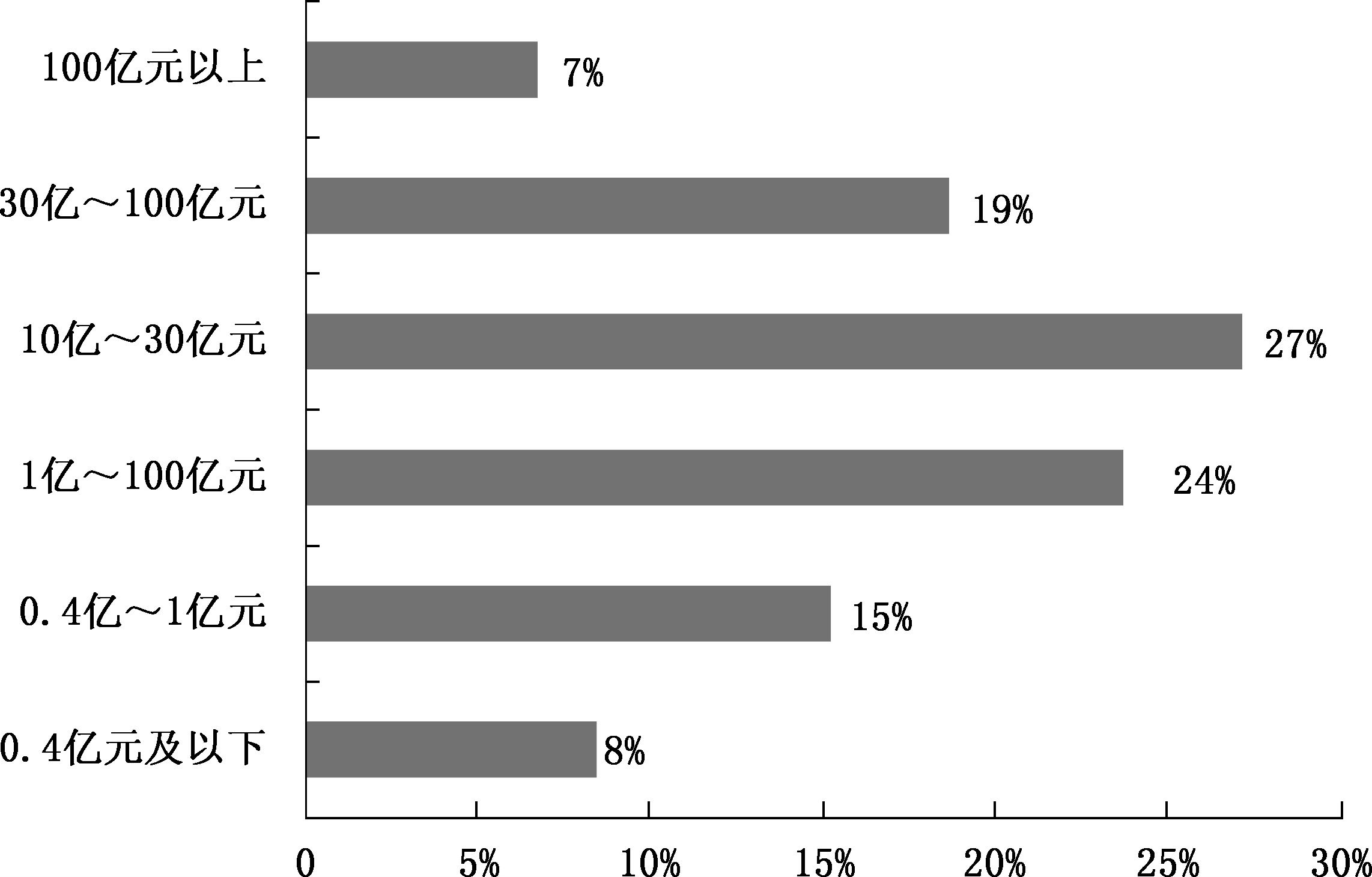 一一根據統計結果,2014年我國物流園區入駐企業平均營業收入為26.4億元,其中有26%的物流園區入駐企業營業收入在30億元以上,詳細分布情況如圖20所示。