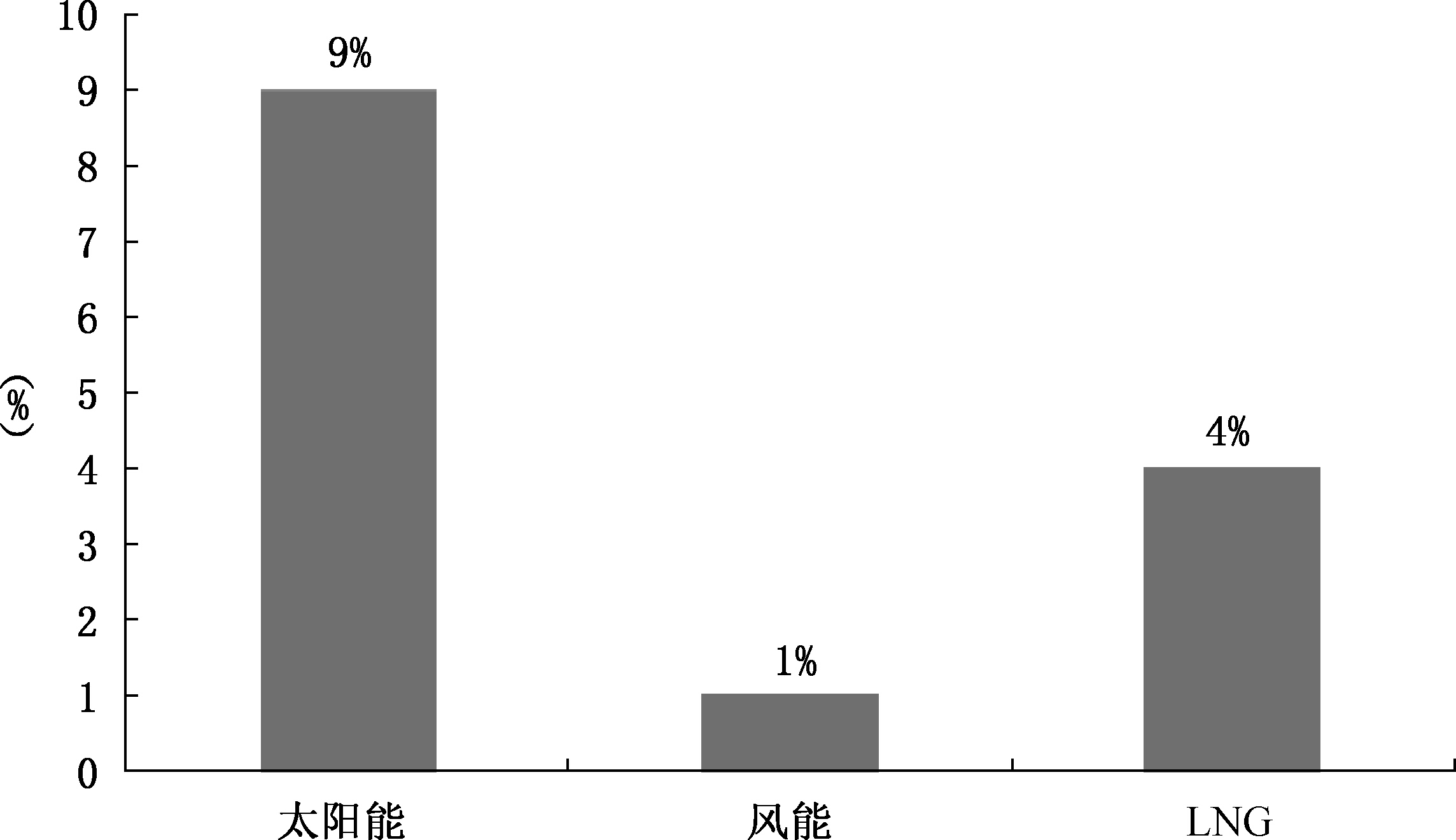 一一目前,樣本物流園區中已有13%的園區使用了新能源(其中有一家物流園區同時使用了風能和LNG兩種新能源),使用的新能源以太陽能、風能以及LNG等為主,具體情況如圖26所示。