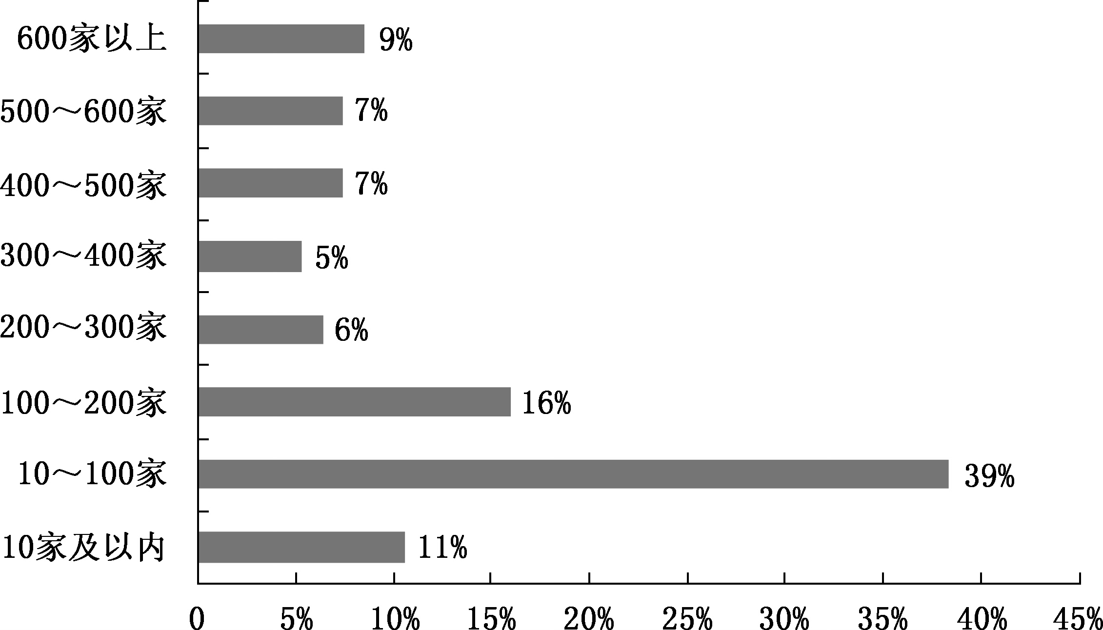 一一根據統計,2014年樣本物流園區平均入駐企業數量為230家。具體分布如圖27所示。