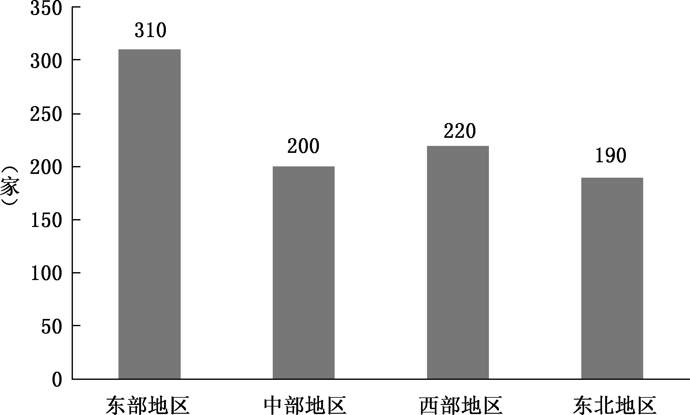 一一通過統計分析,我國不同經濟區域的物流園區平均入駐企業數量可知,東部地區物流園區內入駐企業數量最多,平均為310家。如圖28所示。
