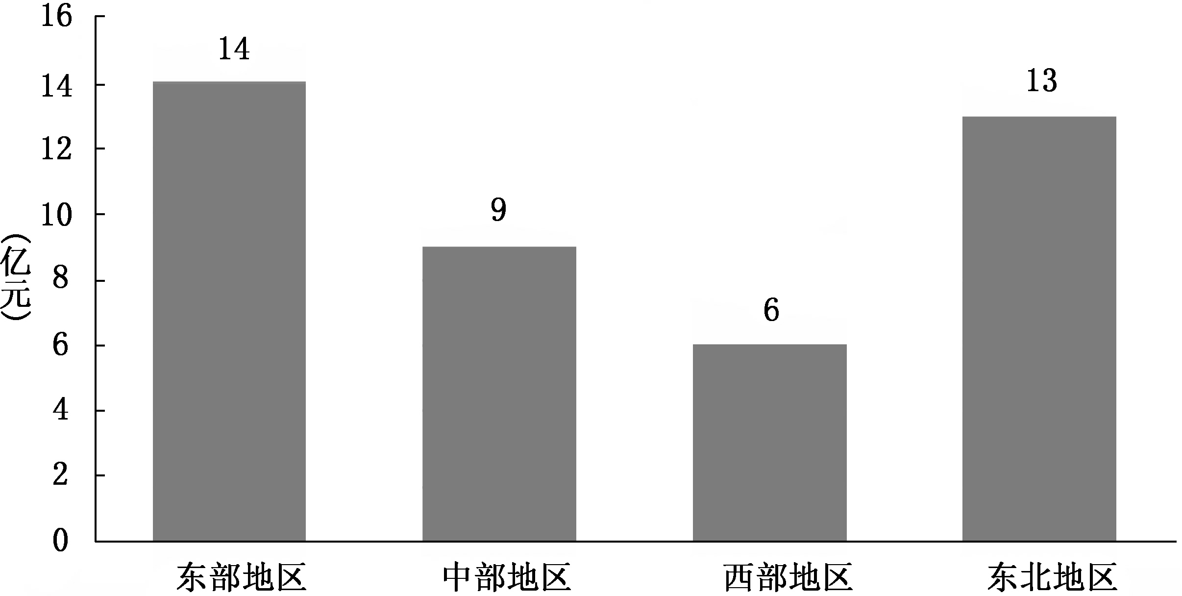 一一據調查,我國東部地區物流園區平均實際投資額在全國最高,為14億元;其次為東北地區13億元;物流園區投資規模最小的為西部地區,平均實際投資額僅為6億元。具體情況如圖3所示。