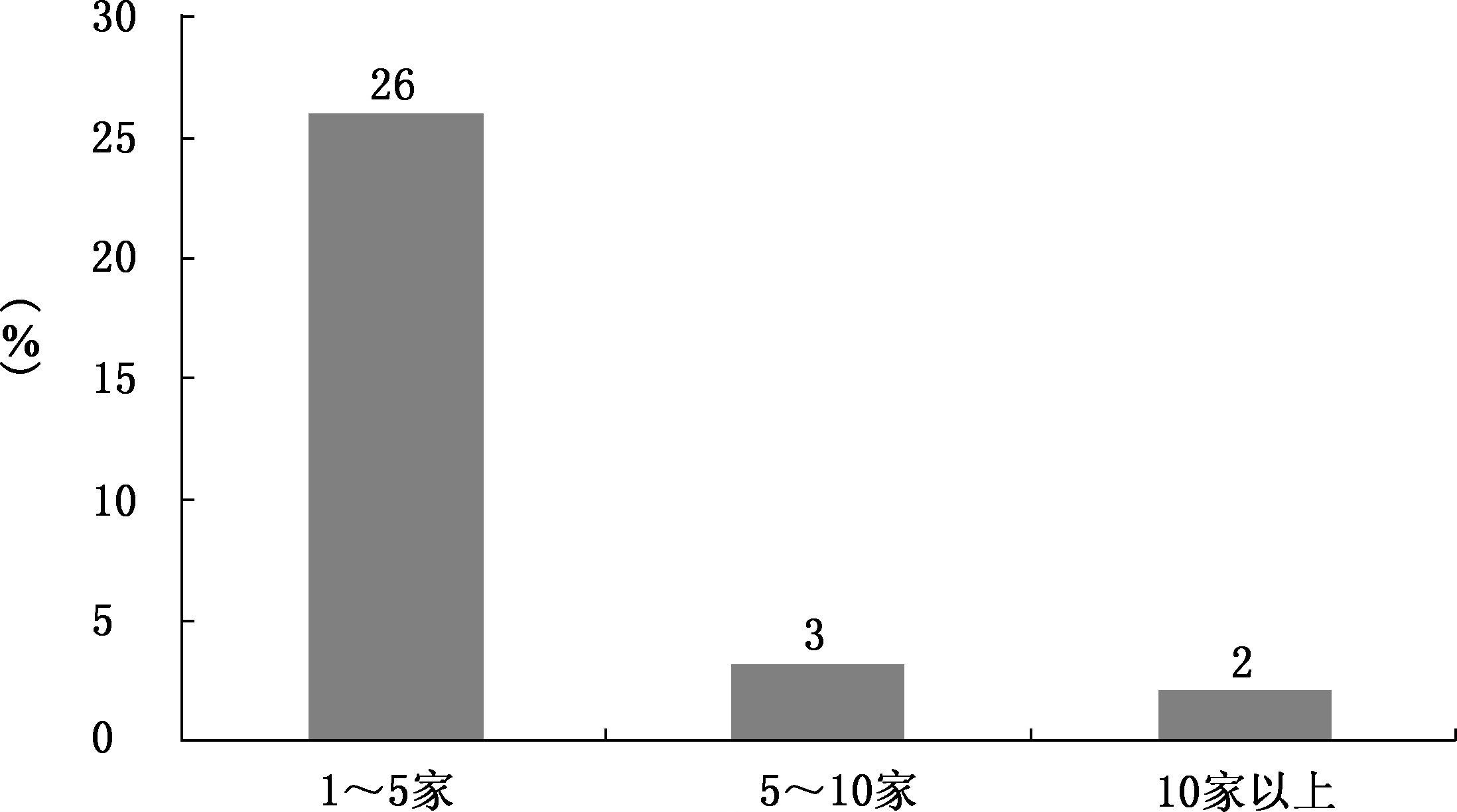 一一調查統計發現,我國物流園區有世界500強企業入駐的僅為31%,平均入駐數量為1家,入駐世界500強企業數量在5家之內的占統計總數的26%;入駐世界500強企業數量在10家以上的僅占2%。具體分布情況如圖30所示。