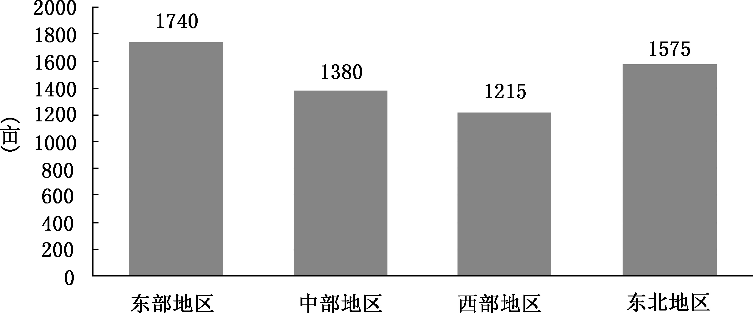 一一我國四大經濟區域的物流園區平均實際占地面積情況如圖6所示。
