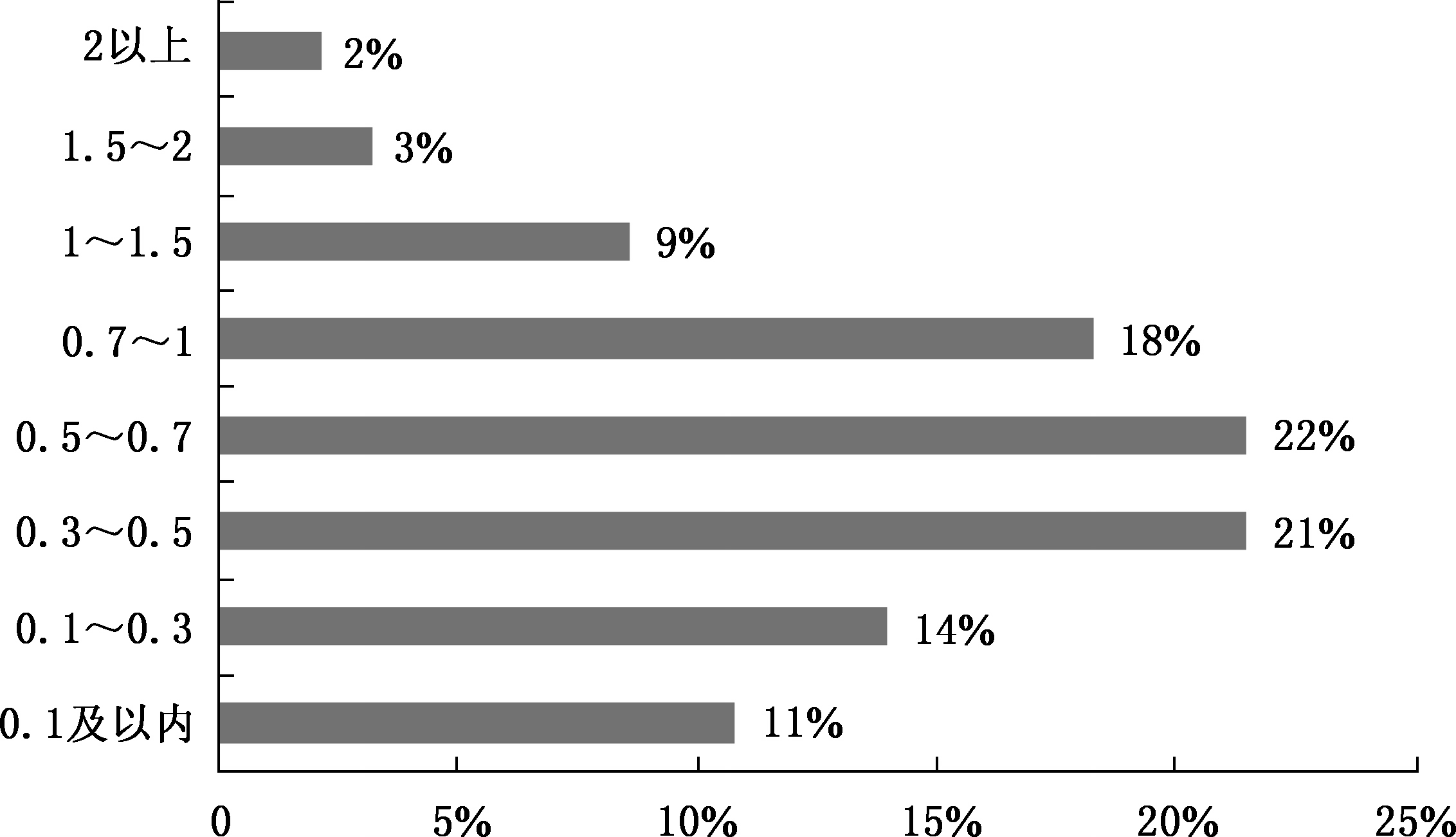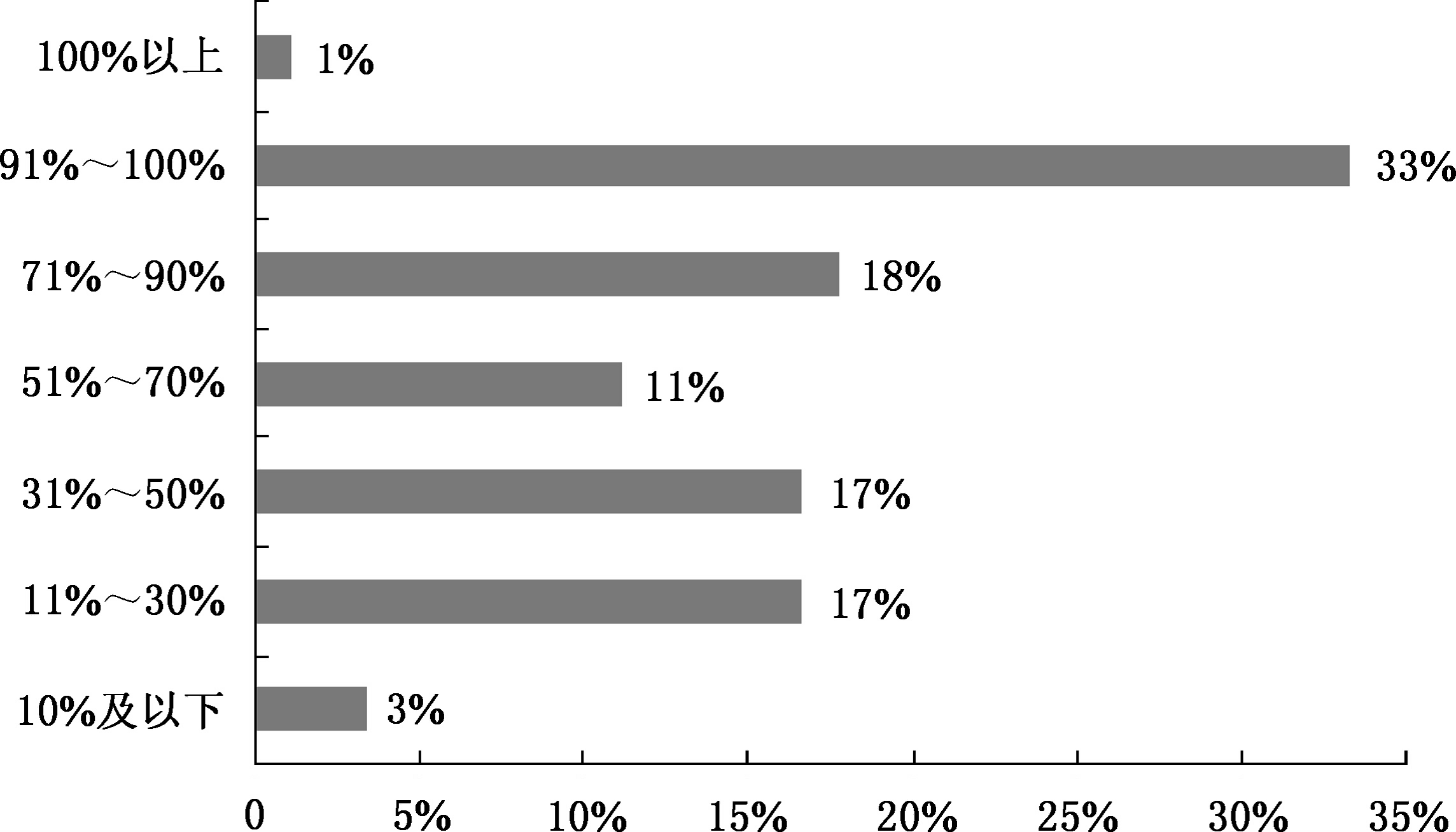 圖2 物流園區實際投資占規劃投資額的比率分布情況