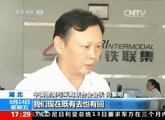 8月14日,中國物流與采購聯合會會長何黎明應邀赴武漢見證全國第800列中歐班列(武漢-德國杜伊斯堡)X8017次開行,并接受央視采訪。