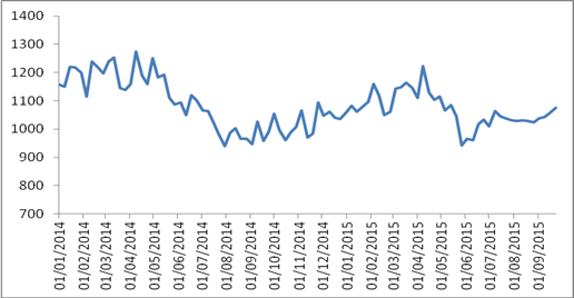 由中國物流與采購聯合會和廣東林安物流集團聯合調查的中國公路物流運價指數2015年9月為105.3點,比上月回升2.4%,比年初回升0.4%,比去年同期回升7.4%。