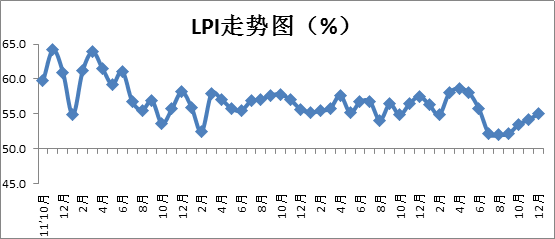 中國(guó)物流與采購(gòu)聯(lián)合會(huì)發(fā)布的2015年12月份中國(guó)物流業(yè)景氣指數(shù)為55%,較上月回升0.8個(gè)百分點(diǎn)。