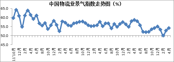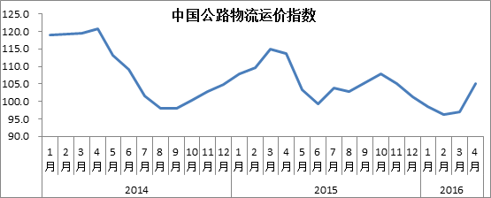 中國物流與采購聯合會發布的2016年4月份中國物流業景氣指數為54.2%,較上月回升1.3個百分點;中國倉儲指數為51%,較上月回落2.8個百分點;中國公路物流運價指數為105.1點,較上月回升8.5個百分點。