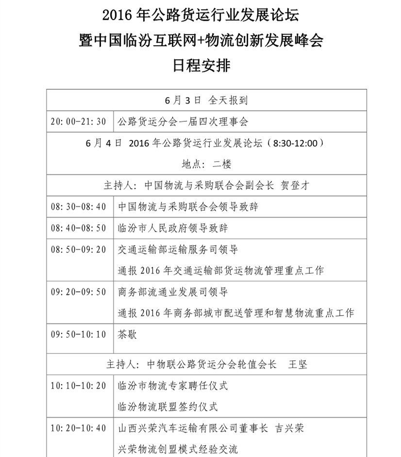 歡迎各位到山西省臨汾市參加2016年公路貨運行業發展論壇。為做好接待服務工作,現將有關事項通知如下: