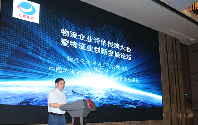 中國(guó)物流與采購(gòu)聯(lián)合會(huì)副會(huì)長(zhǎng)兼秘書(shū)長(zhǎng)崔忠付在大會(huì)上作物流企業(yè)評(píng)估工作發(fā)展報(bào)告