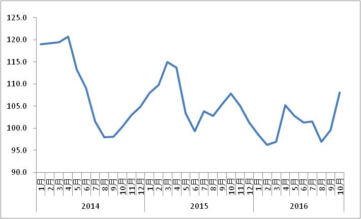 由中國(guó)物流與采購(gòu)聯(lián)合會(huì)和林安物流集團(tuán)聯(lián)合調(diào)查的中國(guó)公路物流運(yùn)價(jià)指數(shù)2016年10月為108.1點(diǎn),比上月回升8.7%,回升幅度為年內(nèi)的最高。運(yùn)價(jià)指數(shù)連續(xù)兩個(gè)月環(huán)比回升,且回升幅度比上年同期擴(kuò)大5個(gè)百分點(diǎn)。這也顯示出,本月運(yùn)價(jià)指數(shù)的回升一方面是受到公路物流市場(chǎng)傳統(tǒng)旺季來(lái)臨,“雙十一”將近備貨需求明顯回升等因素影響;另一方面,也是受到治超新政推進(jìn)、市場(chǎng)運(yùn)力結(jié)構(gòu)調(diào)整等因素影響,運(yùn)輸費(fèi)用水平有所上漲,帶動(dòng)價(jià)格指數(shù)回升。從各周情況看,月內(nèi)各周均有所回升,各周呈現(xiàn)“連續(xù)性上漲,幅度有所回調(diào)”的態(tài)勢(shì)。