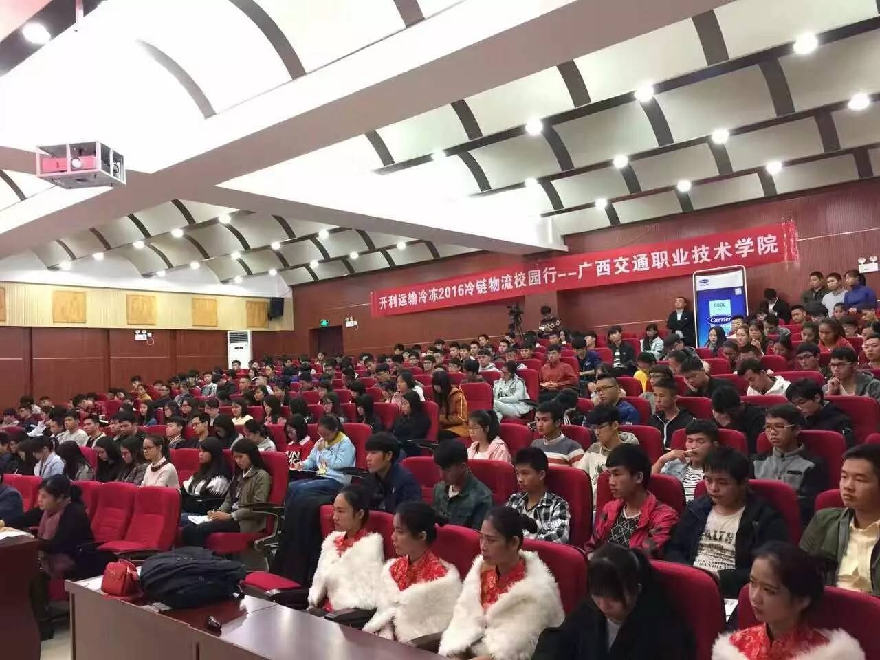 26日作為“中國冷鏈日”,中物聯冷鏈委和全國物流職業教育教學指導委員會組織冷鏈企業和專家走進廣西交通職業技術學院,展開了一場別開生面且意義重大的“冷鏈物流人才培養高峰論壇”,共同討論校園冷鏈人才培養和冷鏈校企合作事宜;與此同時,開利運輸冷凍2016冷鏈物流校園行走進第33所院校,廣西交通職業技術學院,本站吸引了200多名師生的參與。