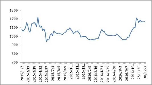 本周(2016年12月26日~12月30日),由中國物流與采購聯合會和林安物流集團聯合調查的中國公路物流運價指數1170.4點,連續兩周回升,環比回升0.3%。