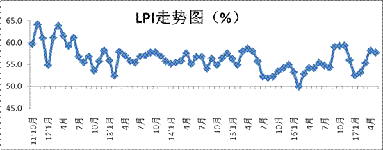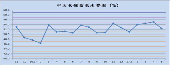 中國(guó)物流與采購(gòu)聯(lián)合會(huì)發(fā)布的2017年5月份中國(guó)物流業(yè)景氣指數(shù)為57.7%較上月回落0.5個(gè)百分點(diǎn);中國(guó)倉(cāng)儲(chǔ)指數(shù)為52.4%,較上月回落2.7個(gè)百分點(diǎn);中國(guó)公路物流運(yùn)價(jià)指數(shù)為106.33點(diǎn),比上月回升0.07%;中國(guó)電商物流運(yùn)行指數(shù)同比指數(shù)為121點(diǎn),比上月小幅回落0.1點(diǎn)。
