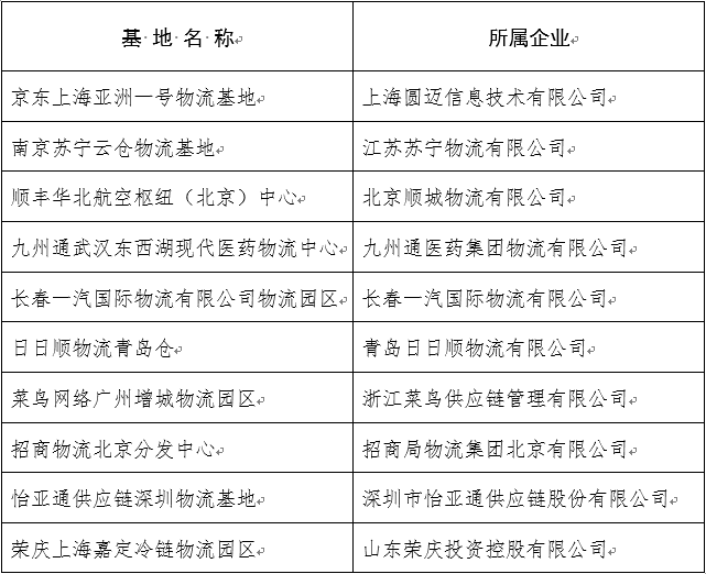 “國家智能化倉儲物流示范基地”推薦候選名單公示