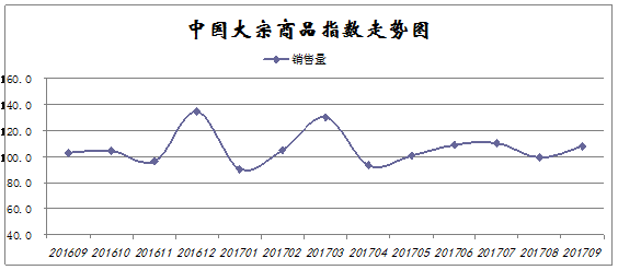 由中國(guó)物流與采購(gòu)聯(lián)合會(huì)調(diào)查、發(fā)布的2017年9月份中國(guó)大宗商品指數(shù)為105.9%,升幅較8月份擴(kuò)大5.5個(gè)百分點(diǎn),連續(xù)八個(gè)月呈現(xiàn)上升態(tài)勢(shì)。各分項(xiàng)指數(shù)中,銷售指數(shù)止跌回升8.4個(gè)百分點(diǎn),是拉動(dòng)綜合指數(shù)升幅擴(kuò)大的重要因素;供應(yīng)指數(shù)繼續(xù)上升,且升幅有所加大;庫(kù)存指數(shù)雖繼續(xù)上升,但升幅已連續(xù)五個(gè)月收窄。本月中國(guó)大宗商品指數(shù)顯示,隨著環(huán)保督查影響結(jié)束以及國(guó)慶長(zhǎng)假節(jié)前備貨,終端企業(yè)補(bǔ)庫(kù)積極性日漸高漲,市場(chǎng)需求逐漸活躍,抵消了供應(yīng)回升以及部分商品出口下降所帶來(lái)的供應(yīng)壓力,國(guó)內(nèi)大宗商品市場(chǎng)供需格局趨于改善,商品庫(kù)存增速穩(wěn)中趨降。但同時(shí),近期國(guó)內(nèi)大宗商品價(jià)格整體上漲明顯,終端企業(yè)生產(chǎn)成本大幅攀升,加之樓市密集調(diào)控以及采暖季北方工地停工和季節(jié)性需求減弱,后期需求或?qū)⒒芈洌M(jìn)而對(duì)大宗商品市場(chǎng)向好發(fā)展形成壓制。