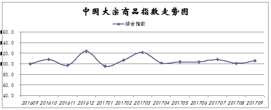 由中國物流與采購聯合會調查、發布的2017年9月份中國大宗商品指數為105.9%,升幅較8月份擴大5.5個百分點,連續八個月呈現上升態勢,顯示國內大宗商品市場平穩增長的態勢已經比較明確。各分項指數中,供應指數繼續上升,且升幅有所擴大;銷售指數則止跌回升;庫存指數雖繼續上升,但升幅已連續五個月收窄;價格繼續上漲,但漲幅有所收窄。總體來看,本月大宗商品指數升幅擴大,顯示當前國內大宗商品市場需求回升,生產活動加快,供需銜接良好,市場穩中向好的態勢進一步明確。不過,價格繼續上漲,反映價格對相關生產的刺激作用加大,也預示著下游行業的成本壓力在增加。