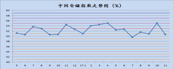中國物流與采購聯合會發布的2017年11月份中國物流業景氣指數為58.6%較上月回升4.6個百分點;中國倉儲指數為50.7%,較上月回落4.4個百分點;中國公路物流運價指數為104.5點,比上月回升0.4%。