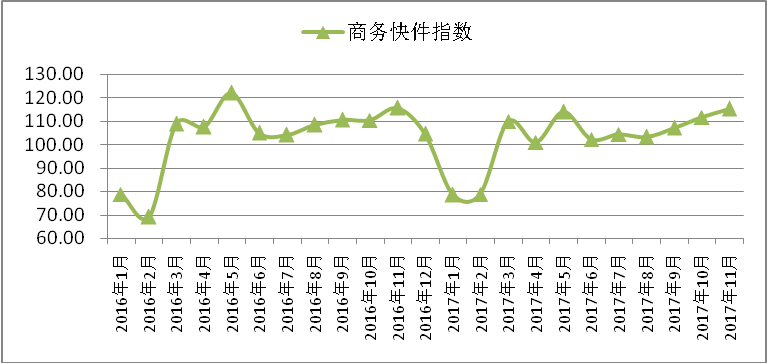 商務(wù)快件指數(shù):反映商務(wù)領(lǐng)域快遞業(yè)務(wù)量增長變化情況,可分為企業(yè)性質(zhì)、行業(yè)、地區(qū)、經(jīng)濟(jì)區(qū)域等分類指數(shù)。