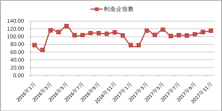 制造業(yè)中裝備制造業(yè)增長較快。11月份電氣機(jī)械、計算機(jī)制造業(yè)商務(wù)快件指數(shù)分別達(dá)到119.3%和109.6%,而黑色金屬冶煉、有色冶煉和化學(xué)工業(yè)指數(shù)偏低,僅為97.2%、98.3%和98.9%,反映出制造業(yè)中裝備制造業(yè)活動加快,鋼鐵和有色及化工行業(yè)活動有所放緩,制造業(yè)發(fā)展動能在轉(zhuǎn)換。此外,與居民生活相關(guān)的農(nóng)副食品加工、服裝制造業(yè)、木材及家具制造業(yè)商務(wù)快件指數(shù)達(dá)到126.9%、138.6%和114.5%,與金九銀十雙十一期間,食品、服裝和家具建材的促銷有一定關(guān)系。