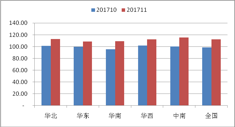 從業(yè)人員需求增加明顯。隨著業(yè)務(wù)旺季的到來,快遞從業(yè)人員規(guī)模迅速增長,11月份人員指數(shù)為112.1%,比上月回升13.4個百分點(diǎn)。其中,華南、中南地區(qū)回升分別達(dá)到13.4個百分點(diǎn)和15.1個百分點(diǎn),華北和華西回升也在10個百分點(diǎn)以上。
