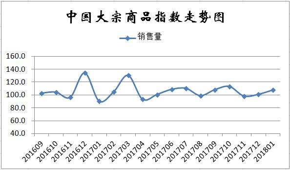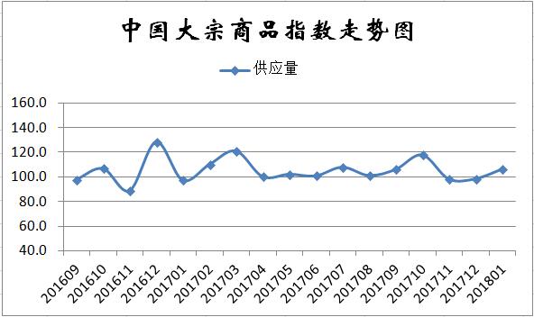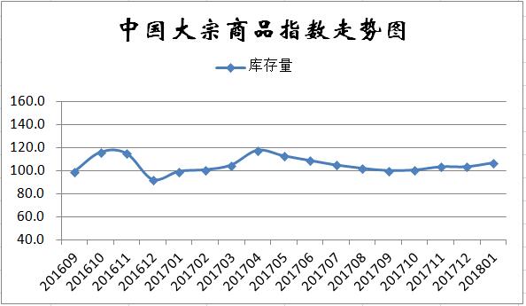 由中國物流與采購聯合會調查、發布的2018年1月份中國大宗商品指數(CBMI)為107.1%,升幅較上月擴大6.5個百分點,該指數連續兩個月上升。各分項指數中,供應指數止跌回升,銷售指數和庫存指數繼續上升。數據顯示,本月國內大宗商品市場供需兩旺,穩中向好的趨勢明顯。