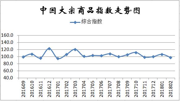 由中國物流與采購聯合會調查、發布的2018年2月份中國大宗商品指數(CBMI)為98.4%,在連續兩個月明顯回升之后本月再度出現回落局面,且跌至2017年2月份以來的最低,顯示國內大宗商品市場運行較為低迷。各分項指數中,供應指數、銷售指數均自高位大幅回落,庫存指數繼續上升,但升幅有所收窄。從本月指數的變化情況來看,受春節因素影響,國內大宗商品市場供需兩弱,需求回落幅度更加明顯,供大于求的壓力有所顯現,商品庫存仍在積壓,短期市場存在下行壓力。
