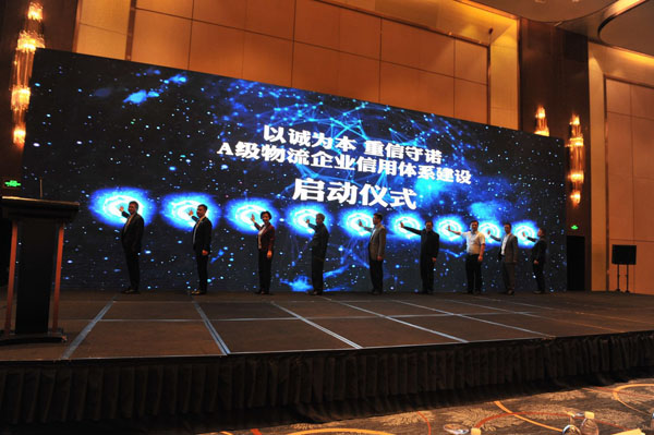 國家發改委經濟運行調節局巡視員魏貴軍、國家商務部流通發展司副巡視員張祥、上海市商務部委員會副主任劉敏出席大會并致辭,各地物流行業協會(學會)負責人、各地方政府物流主管部門負責人、本批次A級物流企業、擔保存貨及質押監管企業、星級冷鏈物流企業等共計600余人一同參加了大會。大會由中國物流與采購聯合會物流企業評估工作辦公室主任楊國棟主持。會上還舉辦了A級物流企業“以誠為本,重信受諾”信用體系建設啟動儀式,崔忠付、魏貴軍、張祥、劉敏以及來自中物聯、物流企業的代表一起參加了啟動儀式。國家發改委經濟運行調節局交通與物流處處長劉希龍就物流信用體系建設作了《我國物流信用體系建設的思路與進展》政策解讀,5A級物流企業代表、環世物流集團總裁林杰在大會作了《物流企業經營模式與理念分享》演講,來自中國重汽集團銷售部副總經理段恒永作了《智能+高效—A級物流企業方案解決之道》演講,5A級物流企業、云南寶象物流集團有限公司黨委書記、董事長沈康分享了《天寶萬象載德同享》,中物聯物流信息服務平臺分會秘書長晏慶華在大會作了《物流信用建設倡議書》演講。