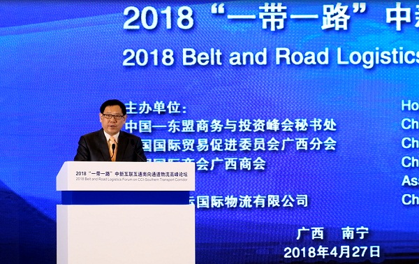 4月27日,2018“一帶一路”中新互聯(lián)互通南向通道物流高峰論壇(以下簡稱“高峰論壇”)在南寧舉辦。中國物流與采購聯(lián)合會副會長兼秘書長崔忠付應邀出席本次論壇并發(fā)表開幕致辭。他指出,論壇各參與方相聚綠城,共同探討中新互聯(lián)互通南向通道(以下簡稱“南向通道”)的建設問題,加快推進南向通道建設,是全面落實習近平總書記對廣西賦予“三大定位”的戰(zhàn)略舉措,是貫徹落實中新兩國領導人戰(zhàn)略共識的具體行動,同時也是推動國際陸海貿易新通道建設的積極探索。