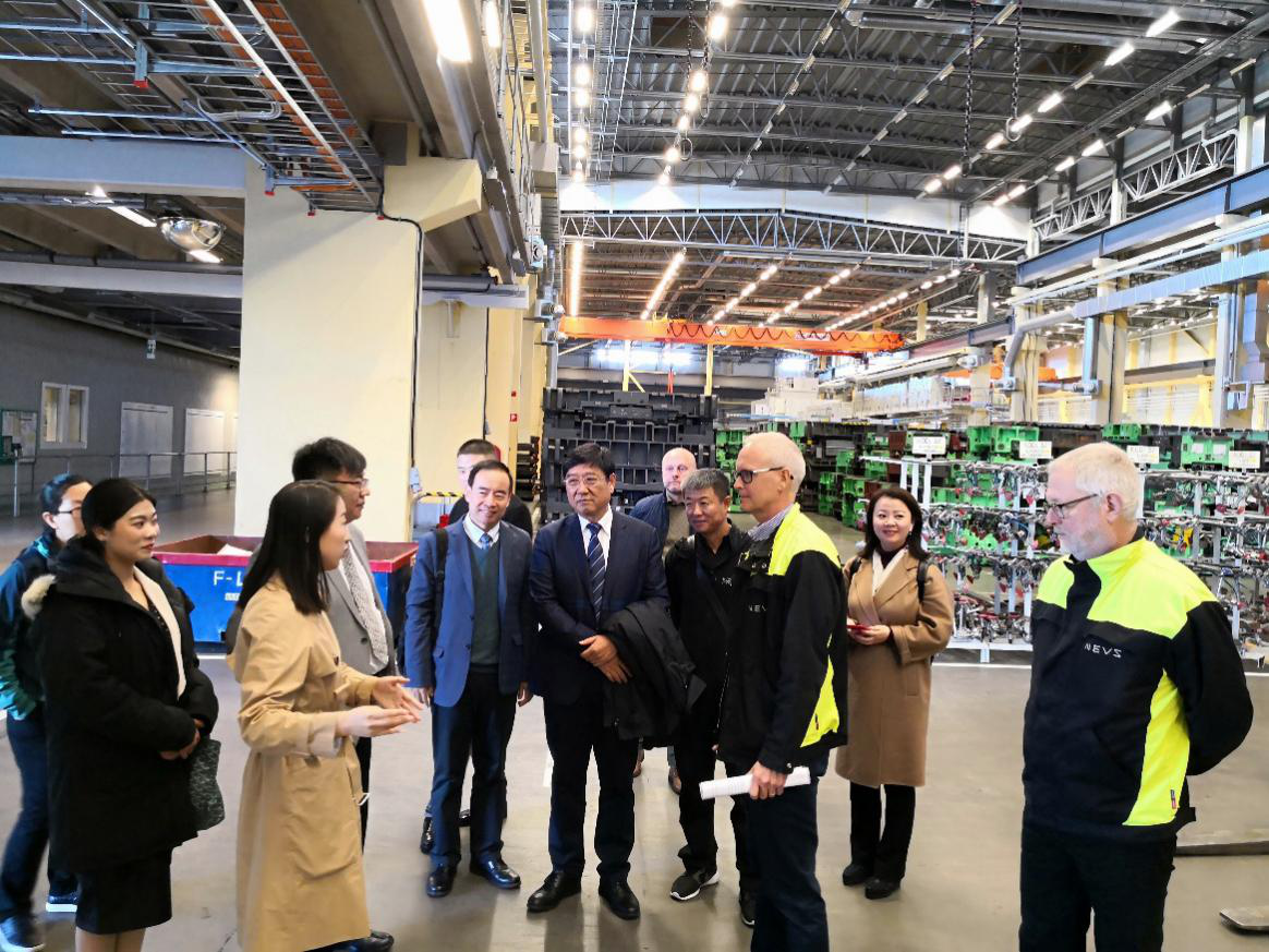 9月24日,蔡進一行拜訪了NEVS汽車工廠,NEVS(國能電動汽車瑞典有限公司)的前身是薩博汽車,目前專注于設計并生產高端電動汽車,在瑞典特羅爾海坦和天津有生產工廠。在NEVS介紹了企業發展情況與發展理念后,雙方就車輛電氣化、車聯網技術、自動駕駛技術、充電公路等內容進行了深入的探討,蔡進表示,國內外物流用車發展方向基本一致,自動化、網聯化、電氣化是行業共同追求的方向。會后,考察團參觀了NEVS特羅爾海坦工廠。