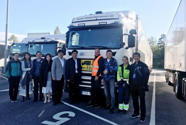 9月25日,蔡進等人來到了瑞典重卡制造企業——斯堪尼亞。斯堪尼亞介紹了卡車可持續運輸系統,他們以節約能源、電氣化、智能安全運輸為發展目標,積極推動模塊化汽車系統發展,目前,多款模塊化汽車列車已在瑞典等歐洲國家應用。會后,一行人前往斯堪尼亞試駕場,體驗雙掛車駕駛情況。