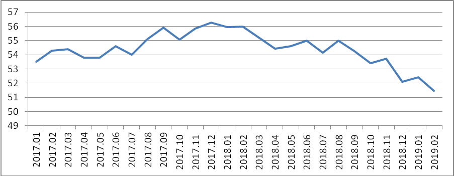 據(jù)中國(guó)物流與采購(gòu)聯(lián)合會(huì)發(fā)布,2019年2月份全球制造業(yè)PMI為51.5%,較上月回落0.9個(gè)百分點(diǎn),較去年同期下降4.5個(gè)百分點(diǎn)。美國(guó)制造業(yè)增速放緩及歐洲制造業(yè)持續(xù)下滑導(dǎo)致全球制造業(yè)增速放緩。全球制造業(yè)PMI自2018年8月以來呈現(xiàn)波動(dòng)回落趨勢(shì),本月創(chuàng)出近兩年新低,意味著全球經(jīng)濟(jì)復(fù)蘇呈現(xiàn)逐步放緩趨勢(shì),下行壓力有所顯現(xiàn)。