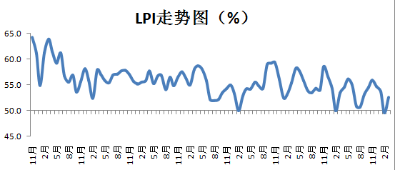 新訂單指數上升。3月份,業務總量指數為52.6%,比上月回升3個百分點,東部、中部和西部均保持在50%以上,顯示出物流業需求全面向好,穩中趨升態勢顯現。