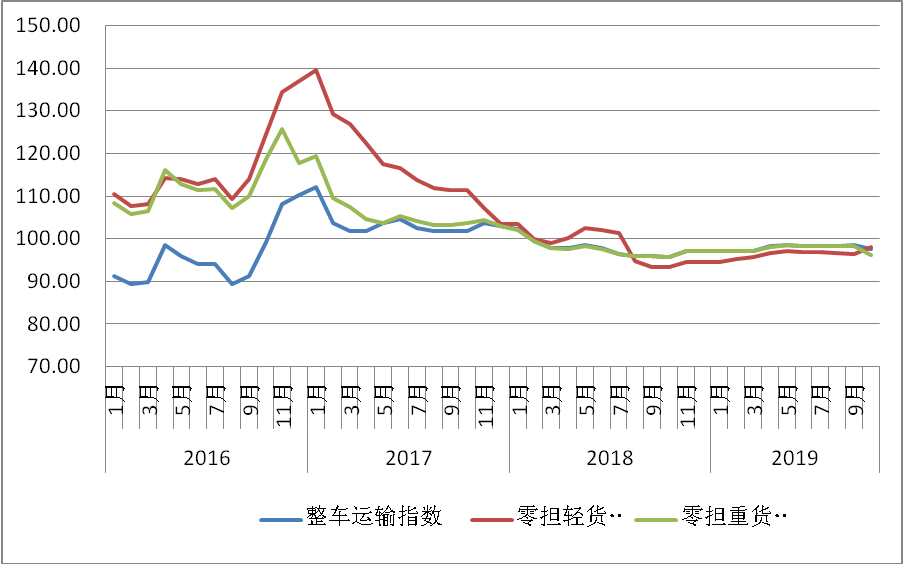 表1 2019年10月中國公路物流運價指數(shù)表