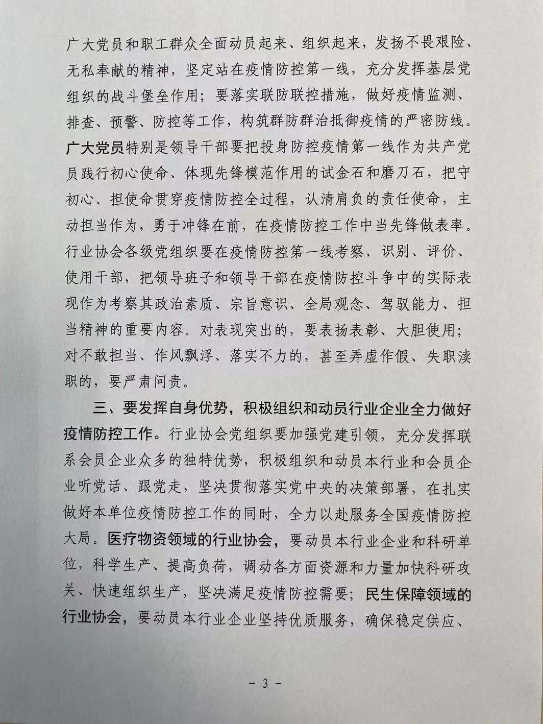 關于行業協會加強黨的領導 為打贏疫情防控阻擊戰提供堅強政治保證的通知