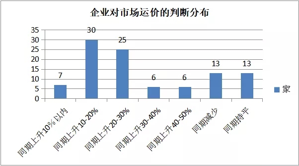 受行業復工復運不利影響,市場運價有上調趨勢。被調查企業中,有近7成以上的企業認為市場運價將上漲10%以上,其中,有近4成的企業認為會上漲20%以上,有1成以上的認為會上漲30%以上。