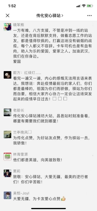 圖:雖然一些卡車司機師傅被人誤解,也會得到很多人的點贊。一線的卡車司機分享經驗,沒能前往一線的司機在為他們加油打氣。